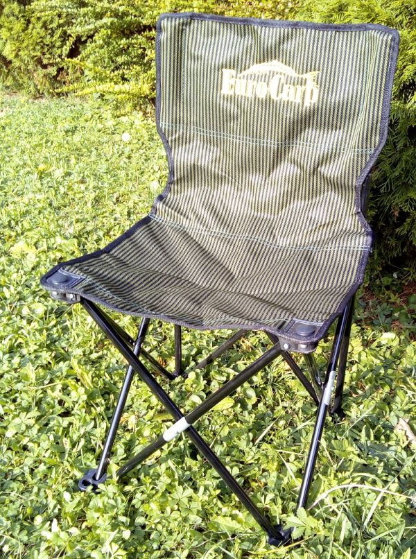 Kisméretű, összecsukható horgásszék.  Mérete: Magasság: 32,5 cm Ülőlap: 34 * 28 cm Háttámla magassága: 30 cm