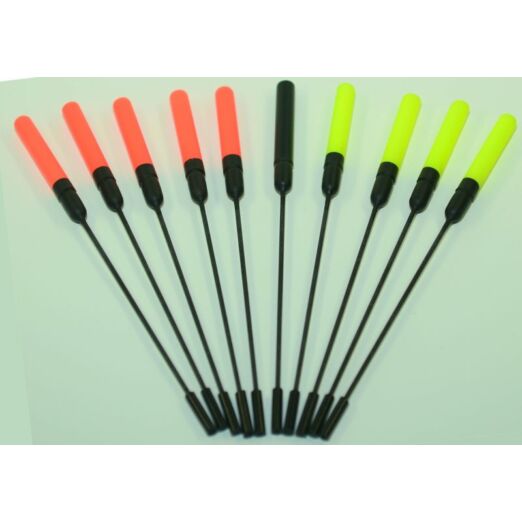 Univerzális antenna match úszókhoz - Teljes hossz: 94 mm - Bóbita hossz: 34 mm - Szár hossz: 50 mm - úszó csatlakozó hossz: 10 mm - Úszó csatlakozó átmérő: 2 mm A csomag 10 db úszóantennát tartalmaz, citromsárga, narancs és fekete színekben.