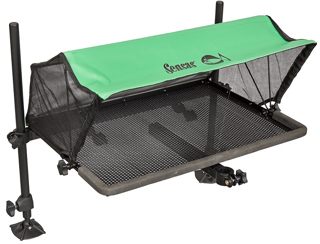 Tálca összecsukható napellenzővel, amely megvédi csalit a naptól és az esőtől. Mérete 65x45 cm. 25 vagy 36 mm -es kerek lábakhoz alkalmas.